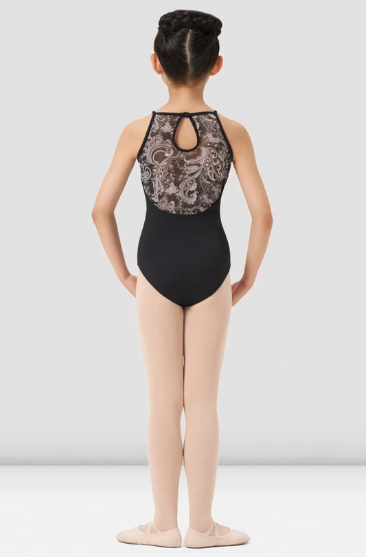 Mirella Girl’s Black Paisley Halter Neck Leotard