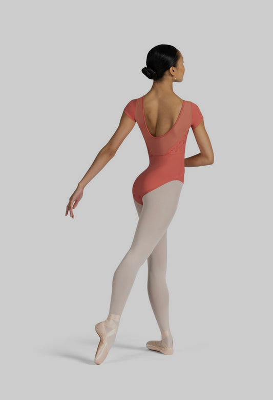 Bloch Ladies Aster Coral Mesh Scoop Back Embroidered Cap Sleeve Leotard