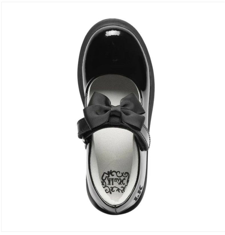 Lelli Kelly Miss LK Collection will have you dressed for school in style! Lelli Kelly Mia is bang on trend for Back To School. Mia comes in black patent and has an hook & loop strap fastening. A large removable black material bow sits on the adjustable strap. Shoes have a chunkier sole unit sole unit. Padded leather footbed provides that extra comfort you'd expect from a Lelli Kelly shoe. LK is embroidered in black onto the outside heel counter of the shoes.
