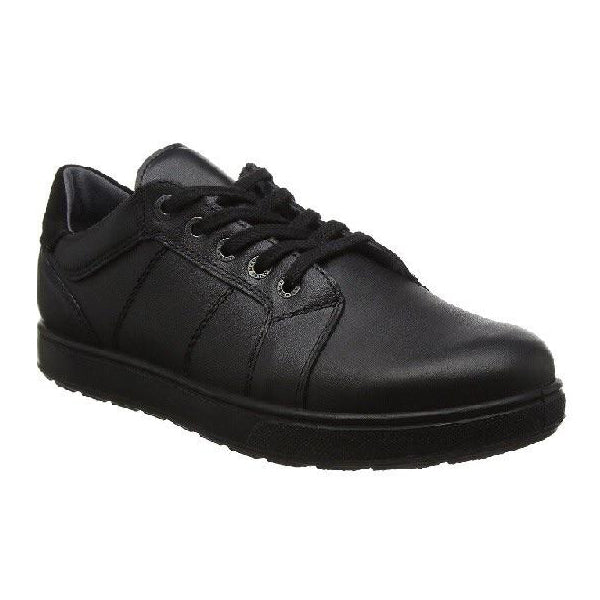 Ricosta Roy black boys school shoe. A strong and durable yet lightweight lace up shoe. High quality leather upper. Highly breathable & dermatologically tested Micro lining with cushioned ankle support for added comfort. Removable & washable drysole which adsorbs & releases moisture. Very light weight Polyurethane sole which is robust, flexible & shock absorbent.