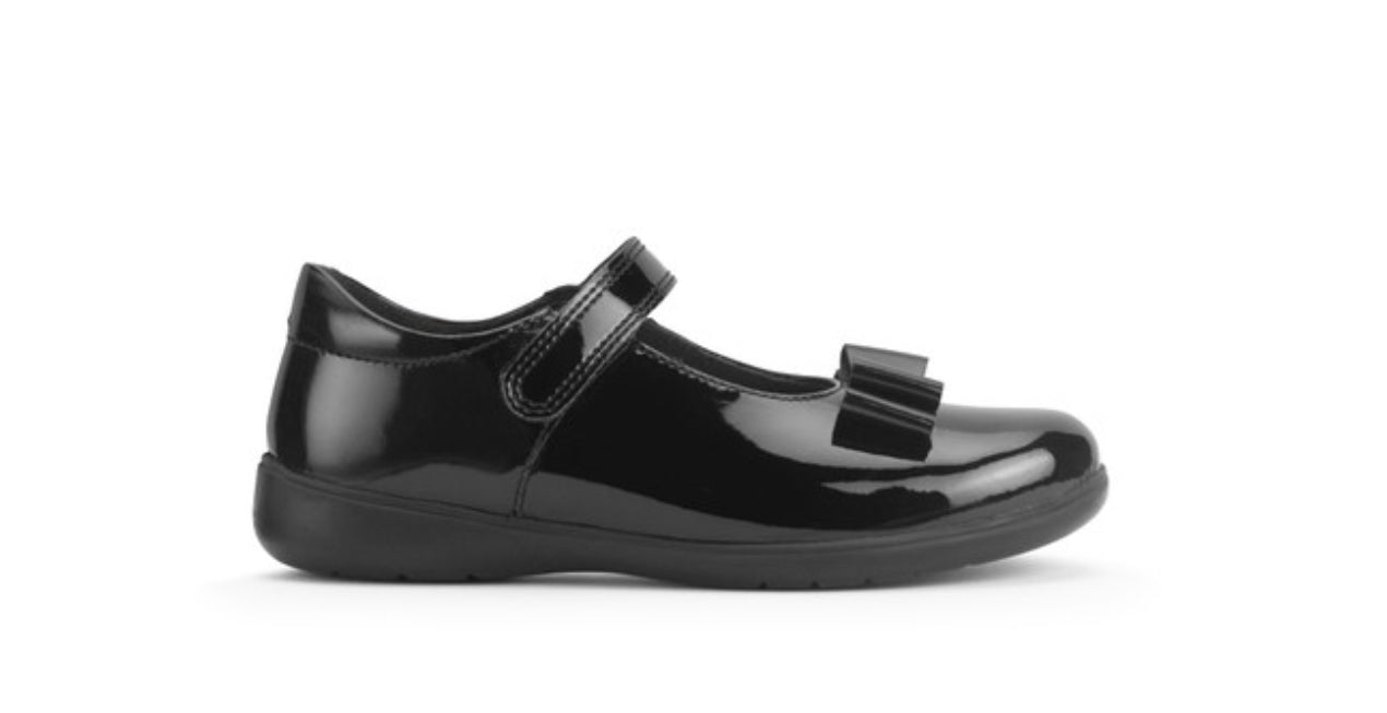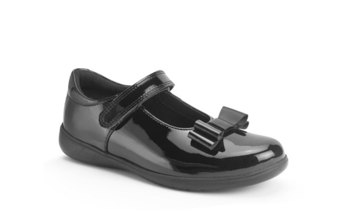 Bella shoes in glossy black patent, the perfect blend of style and practicality for school days. These eye-catching Mary Janes feature a charming bow on the front, adding an adorable touch of elegance to everyday uniforms. Whether they're tackling the classroom or playing at breaktime, these shoes are designed to stand out. Padded ankles provide cushioned support, helping to prevent rubbing or discomfort during long days on the go. Our carefully designed flexible soles encourage natural movement, so every step feels light and easy. The breathable design helps maintain comfort, while the durable, high-quality construction ensures they can keep up with even the busiest of school days.