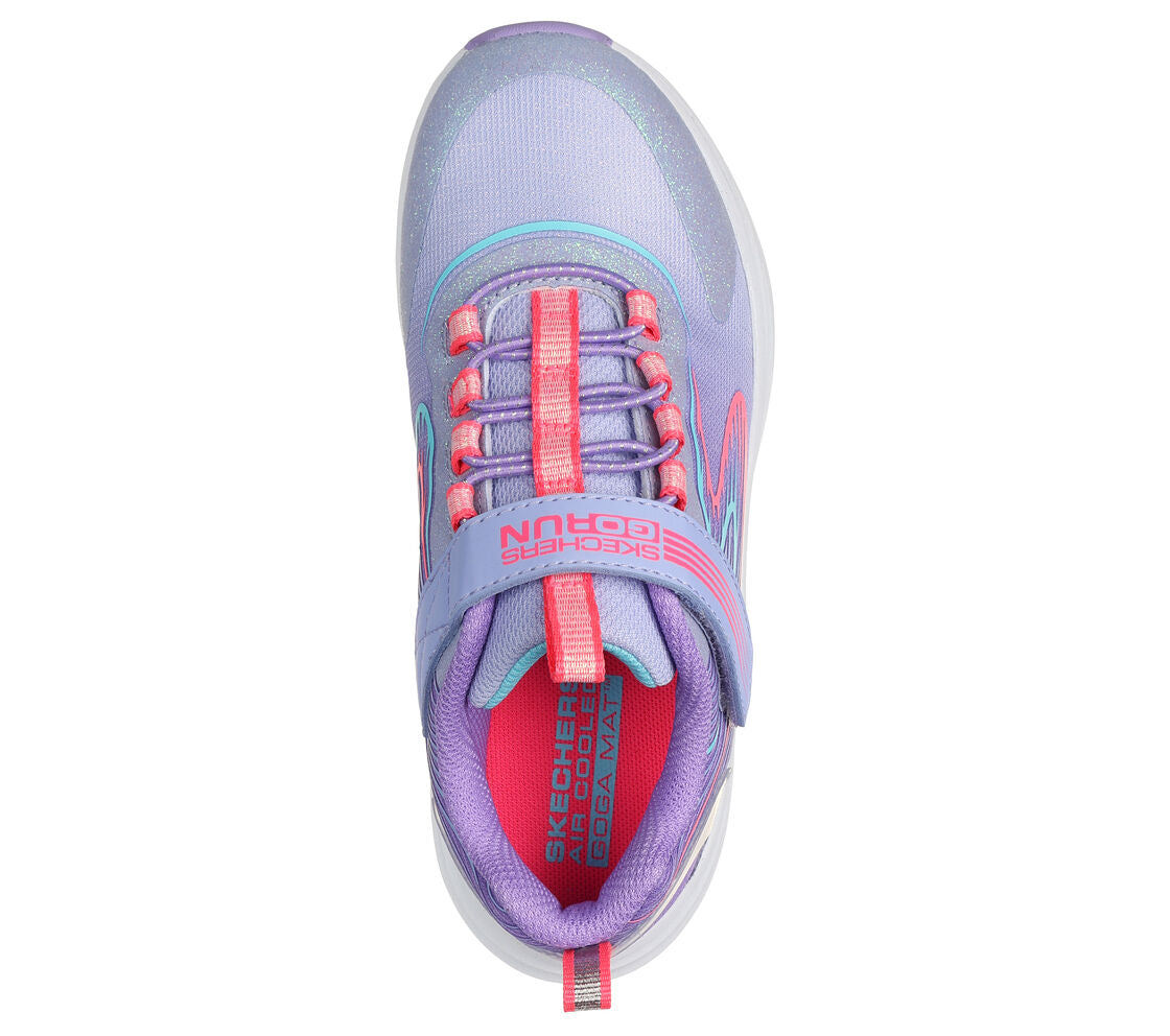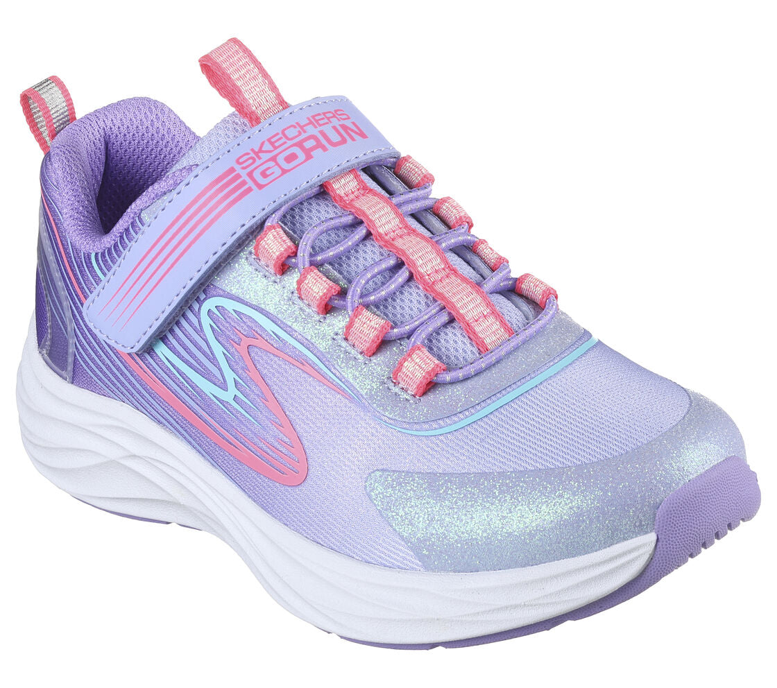 Active kids keep going strong wearing Skechers GO RUN® Accelerate. This lightweight training design features a stretch-laced glitter mesh upper with a cushioned Skechers Air-Cooled Goga Mat™ insole and a rubber-infused bottom plate.